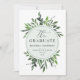anúncio de graduação de folhagem de aquarela/convite postal. Com lindas folhas de aquarela e o moderno tipo ousado este anúncio está bem na tendência e perfeito para qualquer estação. Parte de uma suíte de casamento