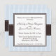 Um convite perfeitamente elegante para jantadas de ensaio, casamentos ou outros acontecimentos luxuosos com um fundo azul de gelo e uma fita marrom de chocolate escuro e uma estrutura indefinida. Convite quadrado de 5,25" x 5,25" com um fundo de listras azul com área de texto indefinida com cinza de prata. Personalize com seu próprio texto.