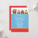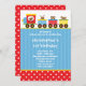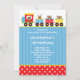 Pequenos animais adoráveis andando num trem colorido. Perfeito para convites para festas de aniversário ou chás de fraldas. Envelopes correspondentes também disponíveis.