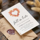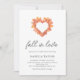 Convites de chá de panela modernos personalizáveis, com uma coroa de forma cardíaca feita de folhas de outono em tons de laranja, ferrugem, amarela e acastanhada sobre fundo branco limpo.
