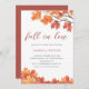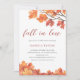 Convites de chá de panela modernos personalizáveis, apresentando um galho de uma árvore no outono e folhas do outono em tons de laranja, ferrugem, amarela e acastanhada sobre um fundo branco limpo.