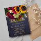 País russo CAIU NO chá de panela de convite para na moda modelo do buquê do no fundo escuro da meia-noite marinho azul quadro apresentando grandes girassóis de ouro amarelo e rosas vermelhos, cordas de luzes cintilantes e um roteiro falsa de tipografia de ouro. +++++++++++++++++ Fácil de personalizar com seus detalhes! Você pode personalizá-lo alterando ainda mais as fontes e as cores das letras. +++++++++++ O convite é adequado para as festas de churrasco/churrasco/churrasco elegantes de outono ao ar livre / quintal vintage rústico.