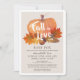 Este "convite de queda no amor" por chá de fraldas apresenta uma abóbora laranja com folhas de outono/outono e uma bolota sobre um fundo castanho-claro enquadrado por uma borda branca. O verso apresenta um fundo castanho bege com padrões de bolinhas brancos. Personalize-o para as suas necessidades. Você pode encontrar produtos correspondentes na minha loja.