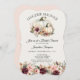 "Cai no Amor!" O convite para chá de lingerie floral de noiva floral com rosa pincelado floral com folhas de outono decora um par de abóboras brancas elegantes. Os nomes dos casais engajados no verso. Concebido por Audrey Jeanne Roberts. Conjunto completo disponível para coordenar. Direitos autorais.