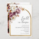 Traga o calor da época do outono para o seu dia especial com nossa Coleção de Convites Dourados do Burgundy Arch. Estes incríveis convites apresentam um fundo rico e cheio de burlões com sotaques dourados reluzentes. Eles são a forma perfeita de mostrar uma foto personalizada, fazer seus convites de casamento e uma manutenção inesquecível.