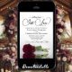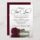 Este convite romântico de casamento apresenta uma pesada de solteiro longo-fio ou rosa de cor de marrom que se encontra do seu lado espelhada numa piscina de água. O título está escrito em letras elegantes e diz: Nada de Rico, apenas amor. A parte de trás é uma cor vermelha marmoreada com um buquê de rosas e espaço para detalhes de casamento, incluindo um código QR, onde seus convidados podem obter mais informações e/ou RSVP on-line. Este convite é uma combinação maravilhosa de moderno e eterno - uma forma perfeita de convidar seus amigos e famílias a compartilhar sua alegria no seu dia especial!