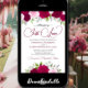 Este belo convite de casamento bico apresenta uma quantidade de rosas pintadas manualmente de aquarela em tons de magenta, rosa quente e blush, juntamente com o verde-jardim de folhas de eucalipto. O título está escrito em letras ricos e diz: Nada de Rico, Apenas Amor! A parte de trás tem uma seção de detalhes com um código QR personalizável onde você pode direcionar seus convidados para uma página da Web para obter mais informações e/ou RSVP. Apresenta um buquê das mesmas flores com um arco de cetim que flui, sobre um fundo rosado profundo e cor púrpura.