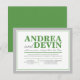 Convites somente para recepção de casamento com um design de tipografia verde e cinza. (Com a precisão com que este design está alinhado, é aconselhável clicar no botão laranja "Personalize-o!" para mover e redimensionar o texto conforme necessário.) Estes convites são usados quando o casal tem um casamento em um destino ou uma pequena cerimônia privada, e apenas convida os convidados para a celebração pós-casamento e recepção.