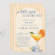 Aperol Spritz Blue Orange Citrus Boy Invitation - Um convite para chá de fraldas único e refrescante para um chá de fraldas de menino. Apresentando uma legal Aperol Spritz com uma fatia de laranja e sotaque de menta adornados com um bebê pacificador azul em um fundo listrado de arco laranja claro e de pré-disquete. Excelente para mães que estão planejando um chá de fraldas temático coquetel, festa de piscina chá de fraldas temática de citros, chá de fraldas cor de laranja e azul ou um doce de verão divertido. Personalize este convite de chá de fraldas de rapaz editável com os seus próprios detalhes de evento. Disponível como download digital instantâneo, envie-o através de texto ou mídia social.