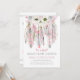 Convites Apoio de Sonho Cinza Rosa com Penas Florais e Flec