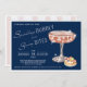 Convite de rico de hora feliz que permanece fácil de atualizar com seus detalhes. Possui um copo "espumante" de champanhe espumante com um gosto delicioso ao lado. A fonte bonita diz "picadas brilhantes e salgadas" no meio, todas colocadas sobre um fundo azul escuro para torná-lo "pop". O reverso é um design de banda complementar de cor branca e champanhe.
