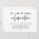 Marque o começo de sua eternidade com elegância usando nosso tema branco-preto contemporâneo, o convite para celebração de casamento, "é um após a celebração do casamento". Perfeito para os casais estendendo sua alegre ocasião, este convite exude sofisticação com uma sugestão de brincadeira, definindo o palco para um evento memorável. Adorado com um tema design de roteiro moderno de eterno, ele adiciona um toque de encanto refinado às suas festividades. Feito por TeeshaDerrick, este convite promete capturar maravilhosamente sua história de amor.