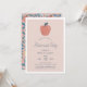Este convite de festas de aposentadoria fofo e elegante apresenta uma maçã vermelha com folha azul marinho sobre um fundo rosa enquadrado por uma borda branca. O verso apresenta um fundo cor-de-rosa coral com padrões florais de maçã. Personalize-o para as suas necessidades. Você pode encontrar produtos correspondentes na minha loja.