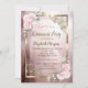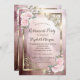 Moldura de ouro elegante e flores cor-de-rosa em fundo rosa dourado.