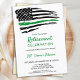 Convites de aposentadoria militar de linha verde fina ou Convites de festas militares que saem. Estes convites de festas do Exército da Linha Verde fina são perfeitos para uma aposentadoria militar, destacamentos militares são enviados, bem-vindos militares para a celebração de casa, graduação militar e soldados indo embora para a festa. A bandeira fina da linha verde representa todos os militares, militares, proteção de fronteiras, patrulha de fronteira, oficial de conservação, guarda florestal, diretor de jogos, polícia federal. Personalize este convite da bandeira militar com o evento, nome e detalhes da festa dos soldados. Veja nossa coleção para combinar presentes de aposentadoria militar, presentes de graduação militar, favoritos para festas e suprimentos. COPYRIGHT © 2021 Judy Burrows, Black Dog Art - Todos Os Direitos Reservados. Convite à Linha Verde Mínima de Foto Soldado de Reforma Militar