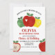 Um barulho de convite de festas de primeiro aniversario de maçã divertida. Tema de aniversário de outono.