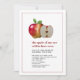 Tema do chá de fraldas neutro no outono, com a aquarela inspirada na ilustração de uma maçã inteira e metade com sementes em forma de coração. O texto vermelho diz, "a maçã do nosso olho estará aqui em breve". O verso é xadrez branca e negra.