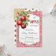 Celebre seu pequeno com charme rústico! Este convite para o chá de fraldas "Apple of Our Eye" apresenta uma ramificação de maçã vermelha estilo aquarela, colocada sobre papel rasgado em vintage e um fundo de gingham desbotado para aquela sensação perfeita de fazenda rural. Ideal para o seu país, chá de fraldas aconchegante.
