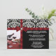 Elegante convite de festa e evento de apreciação de cliente corporativo preto e vermelho de fita e vinho tinto. Este lindo convite de apreciação de cliente corporativo é facilmente personalizado para o seu evento, bastando escolher o botão "Personalize!" para começar a adicionar os detalhes do seu evento, estilo de fonte, tamanho e cor da fonte e texto. Por favor, note que todos os desenhos de cartões e convites que você encontrará na Zazzle são gráficos impressos sem joias, laços, relevos, rebaixamentos ou peças ou partes adicionadas.