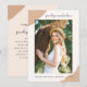 Este simples e elegante convite de festa de formatura fotográfica apresenta imagens chic naturais de bege, e uma imagem à frente do cartão com o nome do formando em bonito script. Este convite para festas de formando é uma forma perfeita de celebrar o seu formando de tendências.
