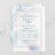 Moderno e romântico, um delicado e empoeirado salto azul de aquarela combinado com um galho de salgueiro desenhado à mão em cinzas árticas que aprecia o topo deste convite de casamento. Um quadro duplo de pewter que seja translúcido o suficiente para ver a ramificação e a aquarela por trás dele inclui os detalhes do casamento escritos em uma fonte contemporânea. Design criado para o BarefootBride™ por © WhimsicalArtwork™ Personalize texto, estilo de letra, cor e tamanho. Criamos que esta modelo é para facilitar a personalização com suas próprias informações. Esta é parte de um Conjunto de Papelaria de Casamento com casamento, chá de fraldas e outros artigos de papelaria.