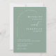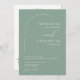 Este convite apresenta uma elegante caligrafia e uma simples fonte de tipografia com um fundo verde sábio junto com um título de forma de arco e foto e código QR. A simplicidade e a design limpa deste convite funciona bem com todos os temas de casamento e definitivamente uma adição excelente ao seu casamento. Basta personalizar os nomes e o texto em alguns passos fáceis e personalizar o cartão de convite com sua foto do casal feliz e substituir o Código QR pelo seu no verso do convite para dar um toque pessoal agradável ao seu convite. Por favor, note: o texto em forma de arco de "Você é convidado para o casamento de" e o guião elegante de caligrafia de "e" e "Recepção a seguir" na frente E o RSVP "gentilmente" no verso juntamente com as linhas na frente e no verso e outros elementos gráficos de trabalho de arte não podem ser editados, movidos ou excluídos, Eles são fixos. Se precisar alterar a cor, você pode personalizar o cartão de convite. Você pode personalizar e personalizar o convite para ajustado das suas necessidades de evento de casamento e clicar em personalizar o convite. Você pode personalizar facilmente este convite com seu próprio texto e compartilhá-lo com seus convidados digitalmente — seja através de texto, email ou mídia social. Se preferir, você também tem a opção de enviar uma versão impressa para seus convidados. Ou, você pode fazer ambos — enviar uma versão digital e acompanhar com uma cópia impressa para um toque pessoal!