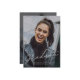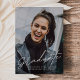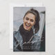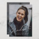 Este Anúncio de graduação de dois gráficos de script simples moderno apresenta uma foto de tamanho de cheio na parte frontal com uma sobreposição de texto branco e uma foto de trás com detalhes opcionais.