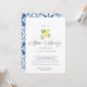 Celebre a noiva com este elegante convite de chá de panela de noiva em estilo mediterrâneo. Com limões em aquarela, flores azuis suaves e letra manuscrita, é perfeito para um chá de panela de verão ou de jardim. Personalize o texto facilmente para o seu evento especial. Ideal para uma celebração com tema de limão, inspirada na Itália ou rústica chique.
