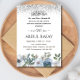 Anuncie o nascimento do seu filho precioso com os nossos cartões de convite Aqeqah. Estes cartões apresentam um design eterno, mostrando uma ilustração encantadora de um fundo floral azul empoeirado de cor d'água, acompanhado de brilho prateado, e detalhes essenciais como nome, hora, data e local do bebê. A paleta de cor suave e suave adiciona um toque de serenidade ao anúncio, fazer que seja uma merecedora apreciada por amigos e familiares. Basta adicionar os detalhes do seu evento neste modelo fácil de usar para torná-lo um convite de tipo único.