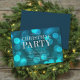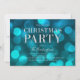 Elegante convite de festas de Natal com as palavras "Festa de Natal" em folha de prata falsa contra um padrão de luzes azul aqua que é perfeito para convidar família e amigos ou até para uma festa de Natal de negócios corporativos. O convite tem um fundo azul escuro atrás. Personalize este convite com seus detalhes substituindo o texto do marcador de posição. Para obter mais opções, como alterar a fonte, o tamanho/cor do texto ou o espaçamento entre letras, clique no botão "Personalizar". *Observe que a Marca d'água do Zazzle que aparece na visualização de zoom NÃO aparecerá no produto impresso final. © Rosewood e Citrus