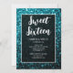 Convites Aqua blue sparkles Sweet 16 elegant script