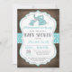 Chá de fraldas Rustic Elefant Convite Aqua e Cartão de Cinza. Fundo Rustic Wood. Vintage Retro. Chá de fraldas de Menino ou Menina Convide. Cinza Chevron. Fita De Turquesa De Aqua Teal. Para mais personalização, clique no botão "Personalizar" e use nossa ferramenta de design para modificar este modelo.
