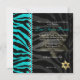 Convites Aqua de cor PixDezines Zebra Bat Mitzvah/DIY