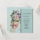 Bonito e delicado púrpura e flores aqua em um delicado fundo aqua colorido com sua informação de casamento na frente. RSVP e Salvar a Data estão disponíveis que correspondem a este convite. Este convite também está disponível em uma opção de papel de folheto. Escolhi o Felt White paper para melhorar este convite. Certifique-se de verificar sua escolha de papel.
