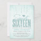 Esta adorável design Doce 16 de The Spotted Olive™ apresenta um bonito fundo azul aqua com uma imagem de gemas e as palavras "Doce Dezesseis" estilhosamente com a palavra "Dezesseis" recheados de uma imagem de brilho azul aqua. NOTA: ESTE DESIGN APENAS APRESENTA UMA IMAGEM IMPRESSA DO GLITTER; NÃO HÁ NENHUM GLITTER FÍSICO USADO OU INCLUÍDO; NÃO HÁ EMBELÉDIOS. ESTE É UM CONVITE IMPRESSO PLANO. Copyright 2013-Presente | Azeite em vaso™ | Todos os direitos reservados