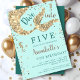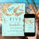 Faça da festa de aniversário da 5 da sua menina uma experiência mágica com nosso convite personalizável para o tema da sereia. Este encantador convite apresenta uma cauda mágica de sereia em ouro e aqua tons com cavalos de mar bonitos que transportarão seus convidados para um mundo de fantasia submarina. O impressão reluzente adiciona um pouco extra de brilho e glamour ao design. E mais, com a habilidade de fazer o download instantaneamente, você pode enviá-los em breve. Personalize-o com os detalhes do seu partido e prepare-se para fazer um salto com este convite encantador.