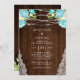 Convites Aqua Mint Rustic Wood String Lights Floral Weding