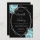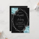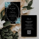 Convites Aqua Silver Floral Black QR Code Wedding