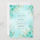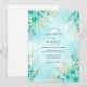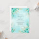 This design features a serene wash of aqua watercolor that creates a soft and ethereal backdrop. Vibrant teal blooms, resembling poppies, are beautifully arranged in the corners alongside shimmering gold-toned foliage and delicate eucalyptus sprigs. The palette combines refreshing blue tones with warm accents for a sophisticated, artistic look.