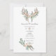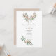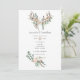 Convite de casamento de seda de algodão marrom empoeirado com folhas de eucalipto e penas boho e chifres.
