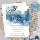 Convite elegante e requintado para chá de noiva (brunch ou chá de casal) com mancha delicada de aquarela azul como fundo para a frase do chá "Bridal", em uma combinação de caligrafia moderna manuscrita e tipografia block. Possibilidade de alterar o texto para Chá de Noiva, Chá de Casal, Brunch ou outro usando a caixa de texto fornecida. Lindo buquê de canto com flores de aquarela e folhagens em tons de azul poeirento, azul marinho, branco, cinza e sage. Parte de trás do cartão com mancha de aquarela azul fluida. Parte da nossa coleção de casamento e eventos "Rustic Blue Mountains".