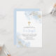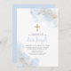Convites Aquarela Azul Cruz Dourada de Batismo e Batizado d