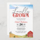 Este adorável Convite para Chás de fraldas de Aquicultura Localmente Cultivada é perfeito para um chá de fraldas celebrando um pequeno que é "cultivado localmente" e está pronto para ser bem-vindo ao mundo! Apresentando uma bela paisagem aquática com um celeiro vermelho e uma charmosa pequena fazenda a distância, este convite é perfeito para um chá de fraldas rústico, de temática country. Também é neutro em termos de gênero, por isso pode ser usado para um rapaz ou uma rapariga.