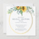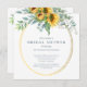 Sua noiva vai adorar este belo convite floral! Este design apresenta belos girassóis, eucalipto e uma estrutura de ouro.