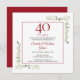 Com delicada vegetação de jardim country em aquarela, este convite de aniversário elegante pode ser personalizado com as informações da sua celebração especial de 40 anos, com um fundo vermelho rubi no verso. Criado por Thisisnotme©