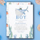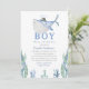Cute under the Sea Watercolor "It's a Boy" Descrição do Produto de Convite para Chás de fraldas: Mergulhe na alegria de receber seu bebê com nosso encantador convite para chá de fraldas "Cute under the Sea Watercolor". Esta carta maravilhosamente projetada apresenta criaturas de aquarelas carinhosas e corais vibrantes, todos colocados contra um fundo branco primitivo. A divertida vida marinha e os coloridos elementos submarinos criam um cenário delicioso e sereno, perfeito para celebrar esta ocasião especial. Pressione o botão fornecido para personalizar o texto, você ficará encantado!