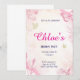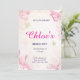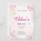 desenho de aquarela em dourado rosa com um modelo para o nome, hora, endereço e RSVP.