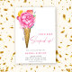Este chá de panela temático é decorado com florais de aquarela e um cone de sorvete. O texto diz: "Ela foi enfiada!" na tipografia de script rosa-na moda.