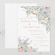Crie uma atmosfera suave e romântica com este convite floral aquarela elegante, apresentando flores pastéis delicadas e folhagens botânicas. A paleta suave de folhas de rosa, lavanda, pêssego e sage cria uma composição floral atemporal perfeita para celebrações especiais.