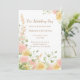 Lindo padrão de crisântemo floral rosa e dourado em aquarela com script marrom e tipografia neste convite de casamento elegante.